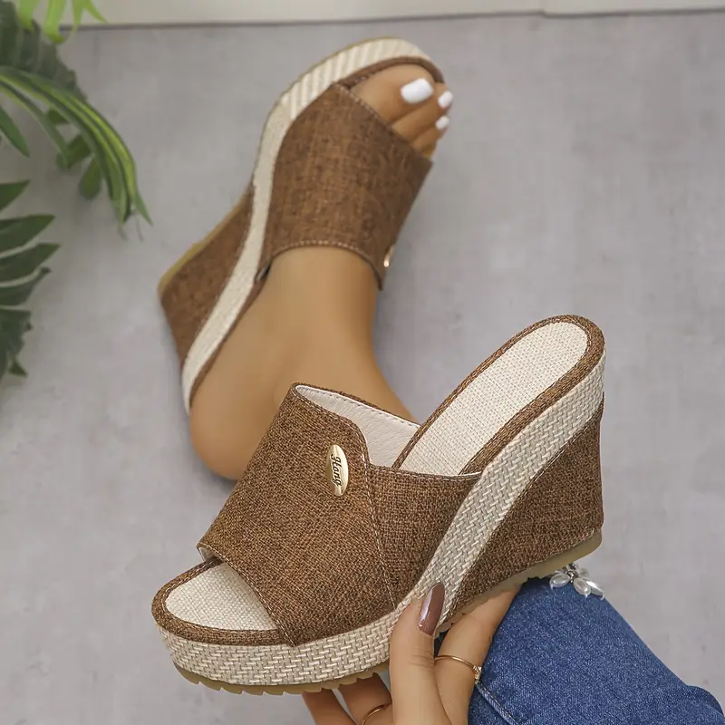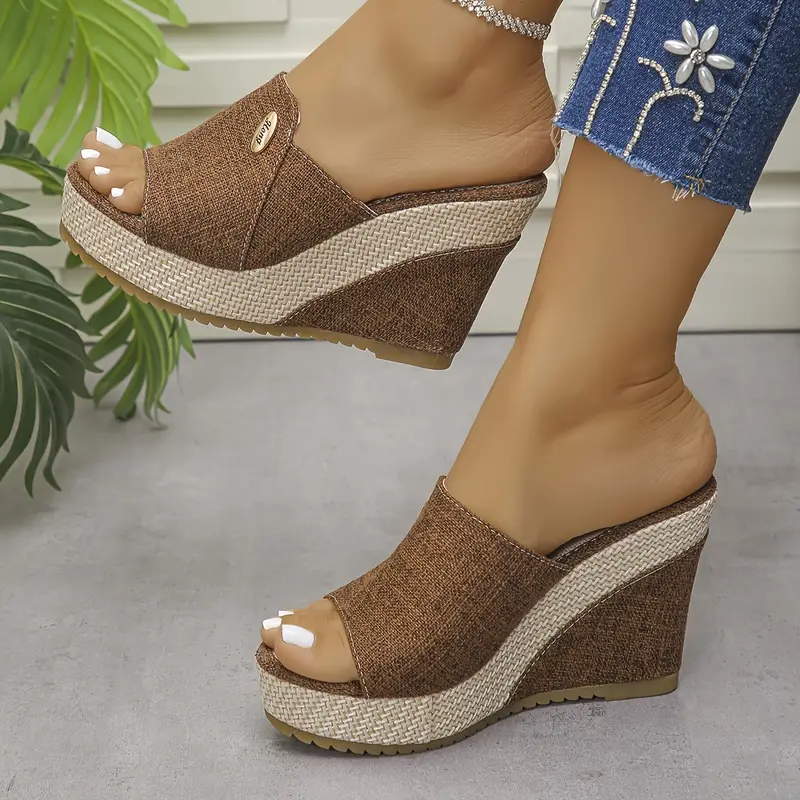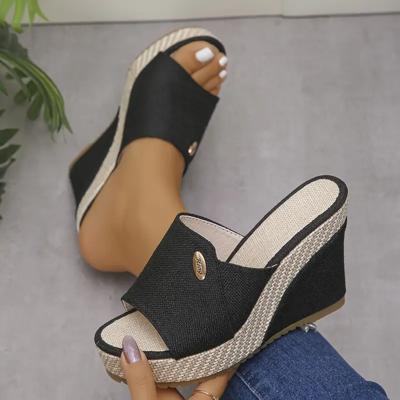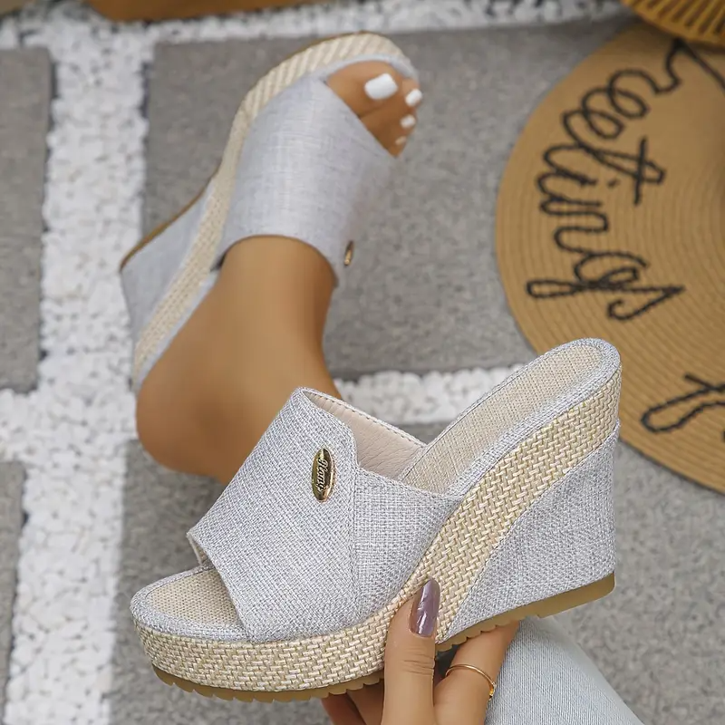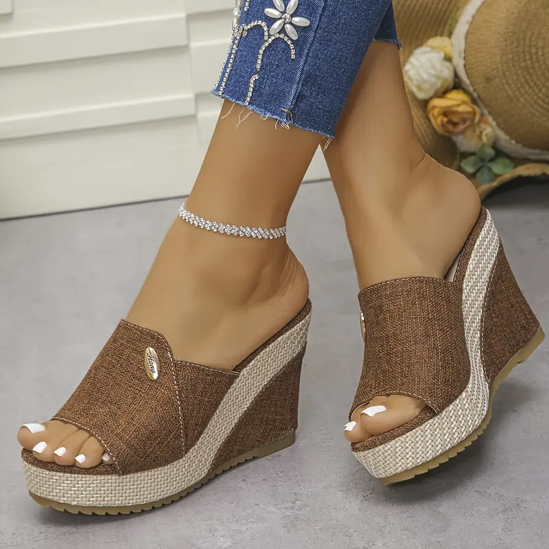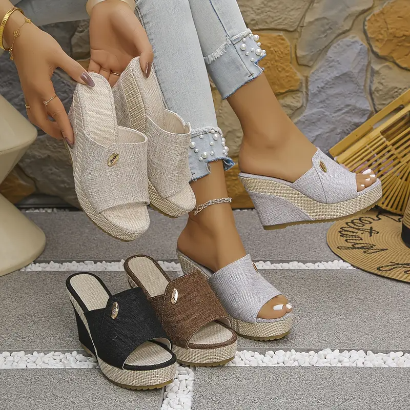 Step into effortless style with the Klara Wedge Sandals, designed with a thick wedge heel and a chic metal buckle. The breathable fabric upper and open-toe design keep you cool, while the non-slip rubber sole ensures steady steps. Perfect for beach vacations, casual outings, and everyday summer wear.
